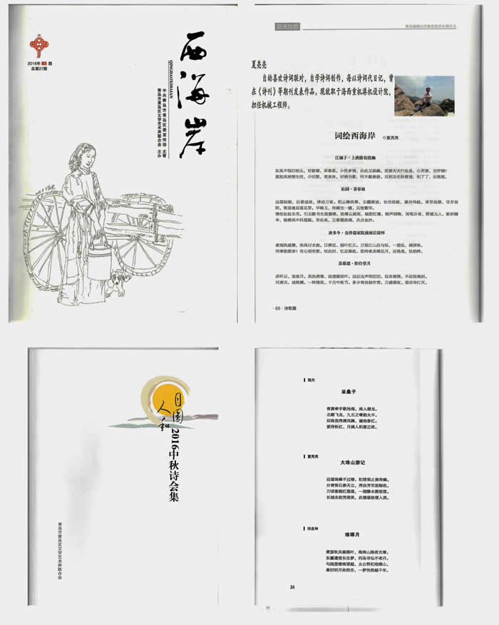 在這場文化盛宴中,我司夏亮亮同志以青島海西重機技術中心港口起重機研究所工程師的身份參與投稿,最終有四首作品入選文聯(lián)《西海岸》雜志,兩首作品入選《月圓人和2016中秋詩會集》,并獲邀參加當晚的詩詞品鑒朗誦會。