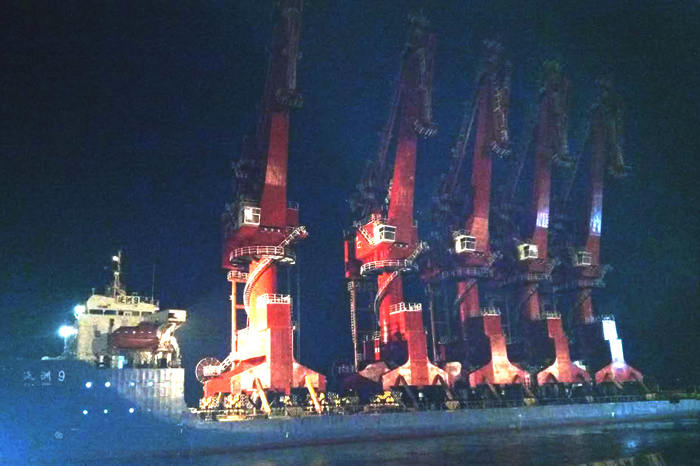 11月2日-3日,連云港3臺門機陸續(xù)上船并完成綁扎;