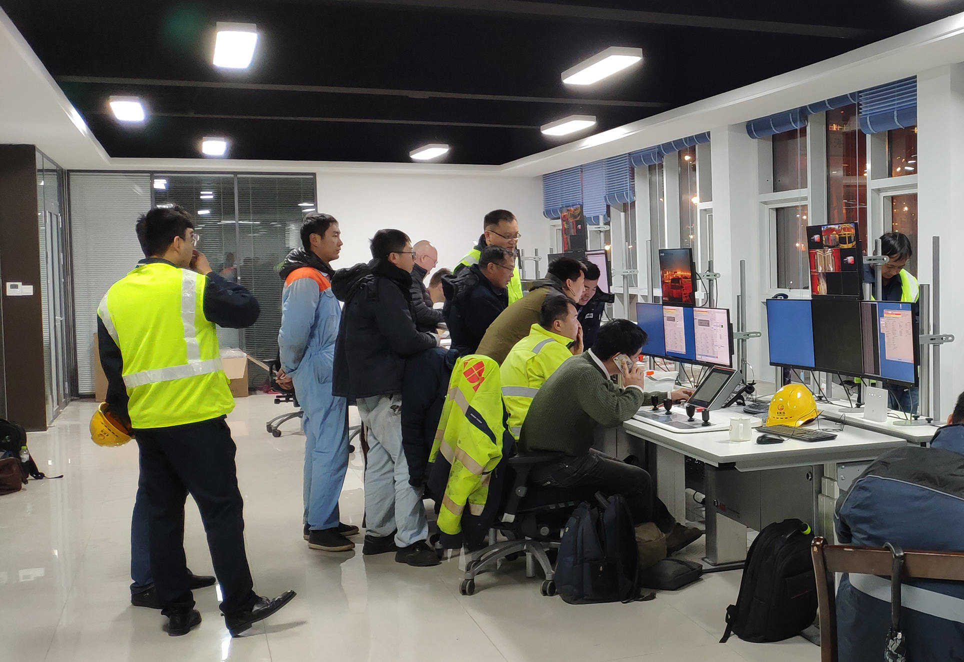 經(jīng)過11月份一個月的緊張努力,運(yùn)輸任務(wù)圓滿完成,藍(lán)圖成為了現(xiàn)實(shí)!現(xiàn)場調(diào)試階段,即使夜幕降臨,施工現(xiàn)場還是燈火通明,各個班組緊張有序地對當(dāng)天的工作收尾,遠(yuǎn)控中心調(diào)試工作有序進(jìn)行,不管多晚,技術(shù)人員都會對當(dāng)天工作進(jìn)行總結(jié),制定第二天的生產(chǎn)計劃。