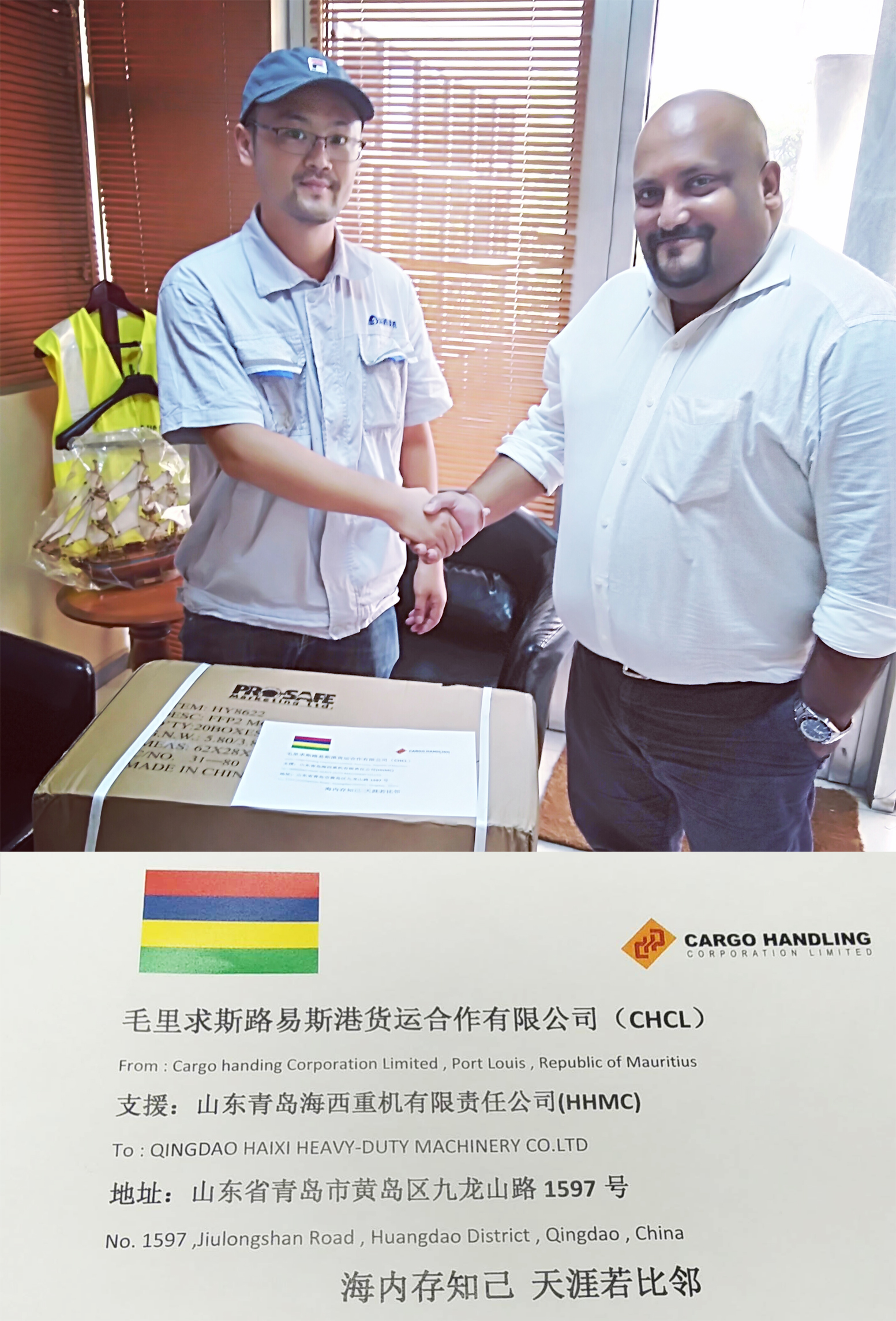 毛里求斯CHCL公司成立于1983年,旗下?lián)碛兴募已b卸公司,是毛里求斯路易港的唯一運營商,是海西重機長期友好合作的業(yè)主。Bimal先生得知海西重機售后服務員工幫同事買口罩時,了解到我國疫情情況和公司口罩吃緊現(xiàn)狀后,立即向CHCL總部反映,第一時間得到回復捐贈口罩。Anada先生自發(fā)組織維修部全體員工,出錢出力募集口罩。
