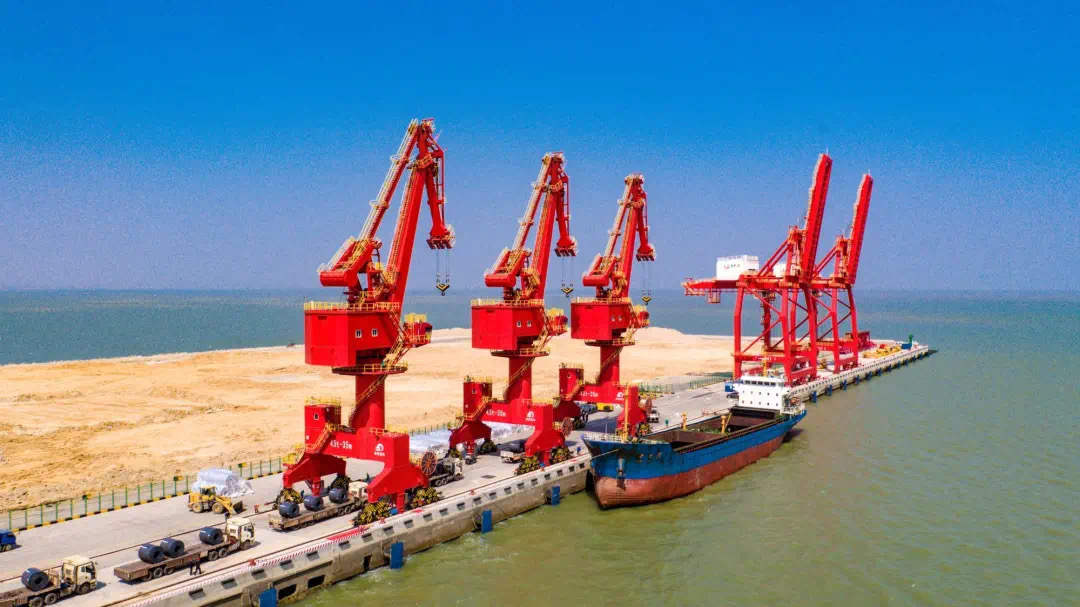 5月15日,武漢船機海西重機為日照港山鋼碼頭有限公司打造的3臺45t-35m門座起重機交付。