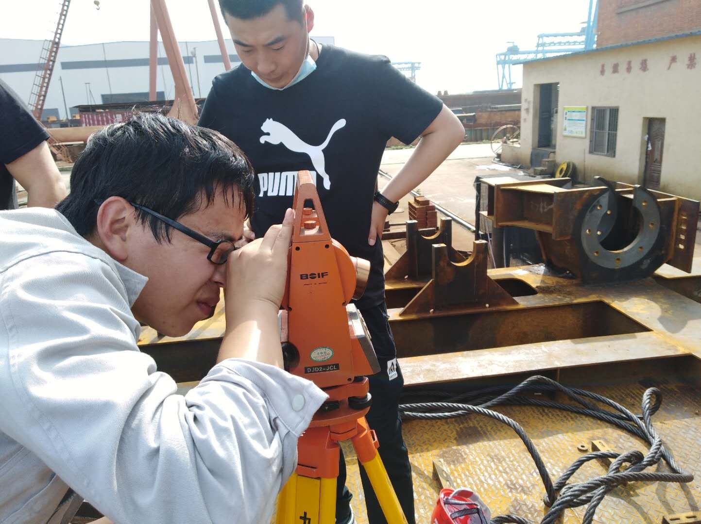 “我先后前往紅光碼頭總裝現(xiàn)場(chǎng)以及九橋鋼結(jié)構(gòu)制作現(xiàn)場(chǎng),幾乎每天都有雨,現(xiàn)場(chǎng)施工壓力大,經(jīng)常要冒雨趕工,在雨中工作已經(jīng)成為常態(tài),哪怕渾身濕透也要繼續(xù)。通過與施工隊(duì)溝通,在師傅牟壽堂的指導(dǎo)下,清點(diǎn)現(xiàn)場(chǎng)物資,不斷解決現(xiàn)場(chǎng)技術(shù)問題,加深了對(duì)整機(jī)結(jié)構(gòu)和裝配的理解?,F(xiàn)場(chǎng)碼頭吊裝需要使用浮吊,浮吊方案的編制十分復(fù)雜,不僅僅要考慮吊高、幅度與載重,還要考慮水位、吊裝角度、臂架干涉等一系列的問題,為了把參數(shù)計(jì)算準(zhǔn)確,經(jīng)常加班加點(diǎn),還好努力就有收獲,現(xiàn)在對(duì)吊裝作業(yè)的理解更深了。”劉镕旗在感嘆自己的成長(zhǎng),感恩于他的付出,畢竟無(wú)論是小青年還是老青年,這片藍(lán)天是靠大家共同撐起的。
