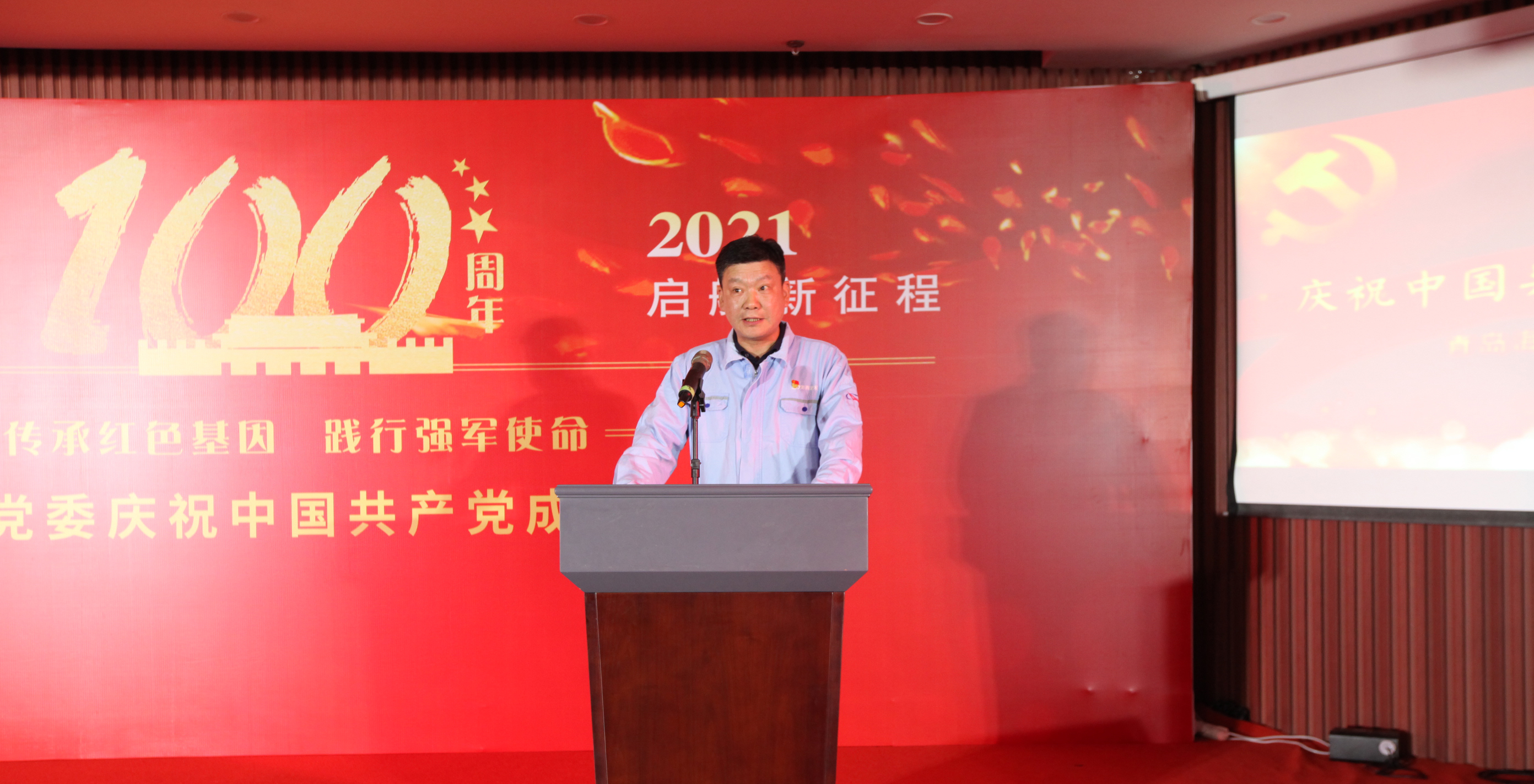 今年是中國(guó)共產(chǎn)黨成立100周年,百年征程,波瀾壯闊;百年初心,歷久彌堅(jiān)。在文藝匯演開(kāi)始前,全體起立,奏國(guó)歌;模范黨員宋祥吉同志帶領(lǐng)新黨員進(jìn)行了莊嚴(yán)的入黨宣誓、老黨員重溫入黨誓詞。公司黨委書(shū)記、董事長(zhǎng)鄧振山發(fā)表了開(kāi)場(chǎng)講話《汲取紅色智慧 凝聚奮進(jìn)力量 譜寫(xiě)新時(shí)代企業(yè)高質(zhì)量發(fā)展新篇章》。