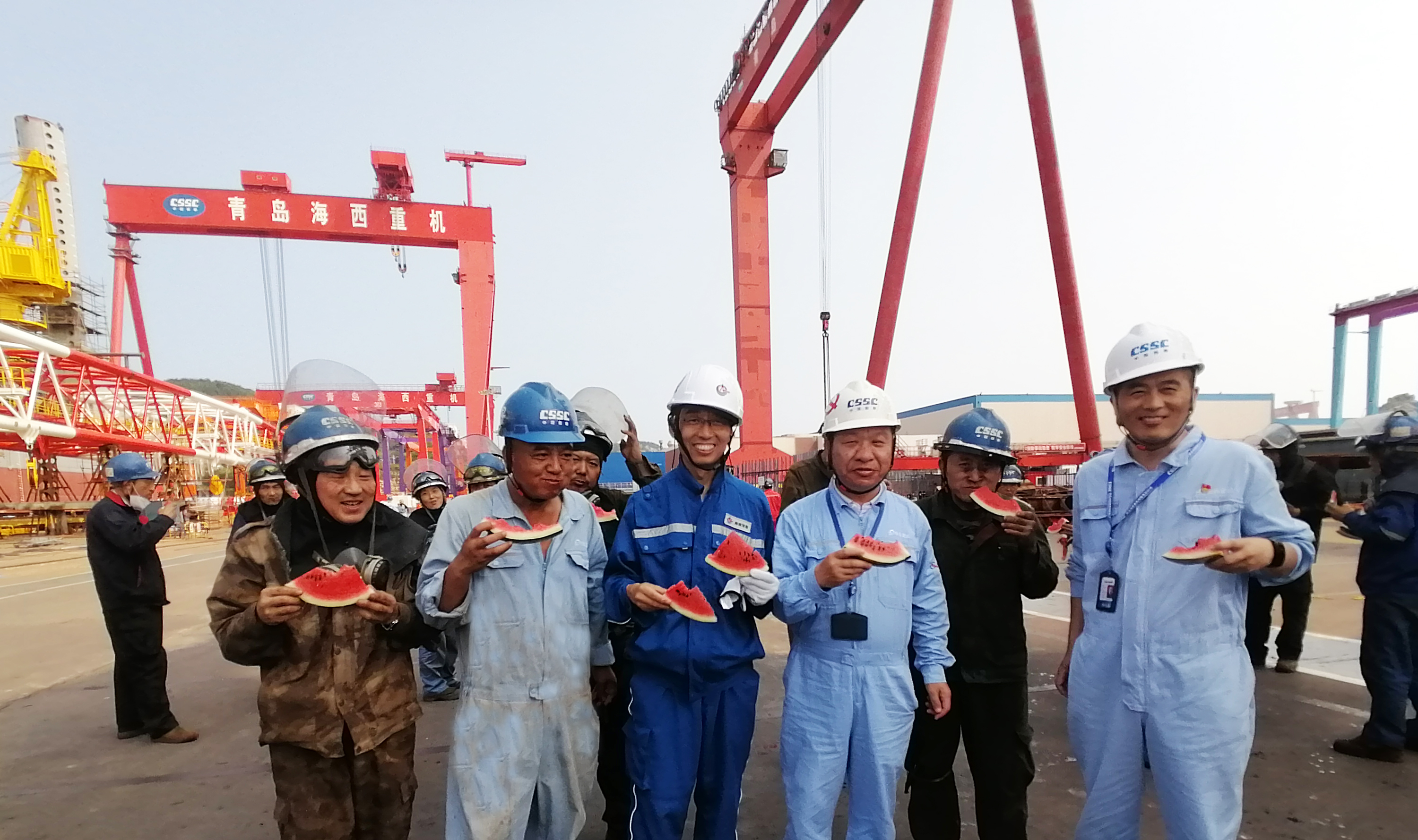“西瓜真甜,感謝公司的關(guān)愛,我們會(huì)更加努力,戰(zhàn)酷暑、搶節(jié)點(diǎn),更好地保障生產(chǎn)?!变摌?gòu)制造部舾裝工人董學(xué)輝開心地說到。