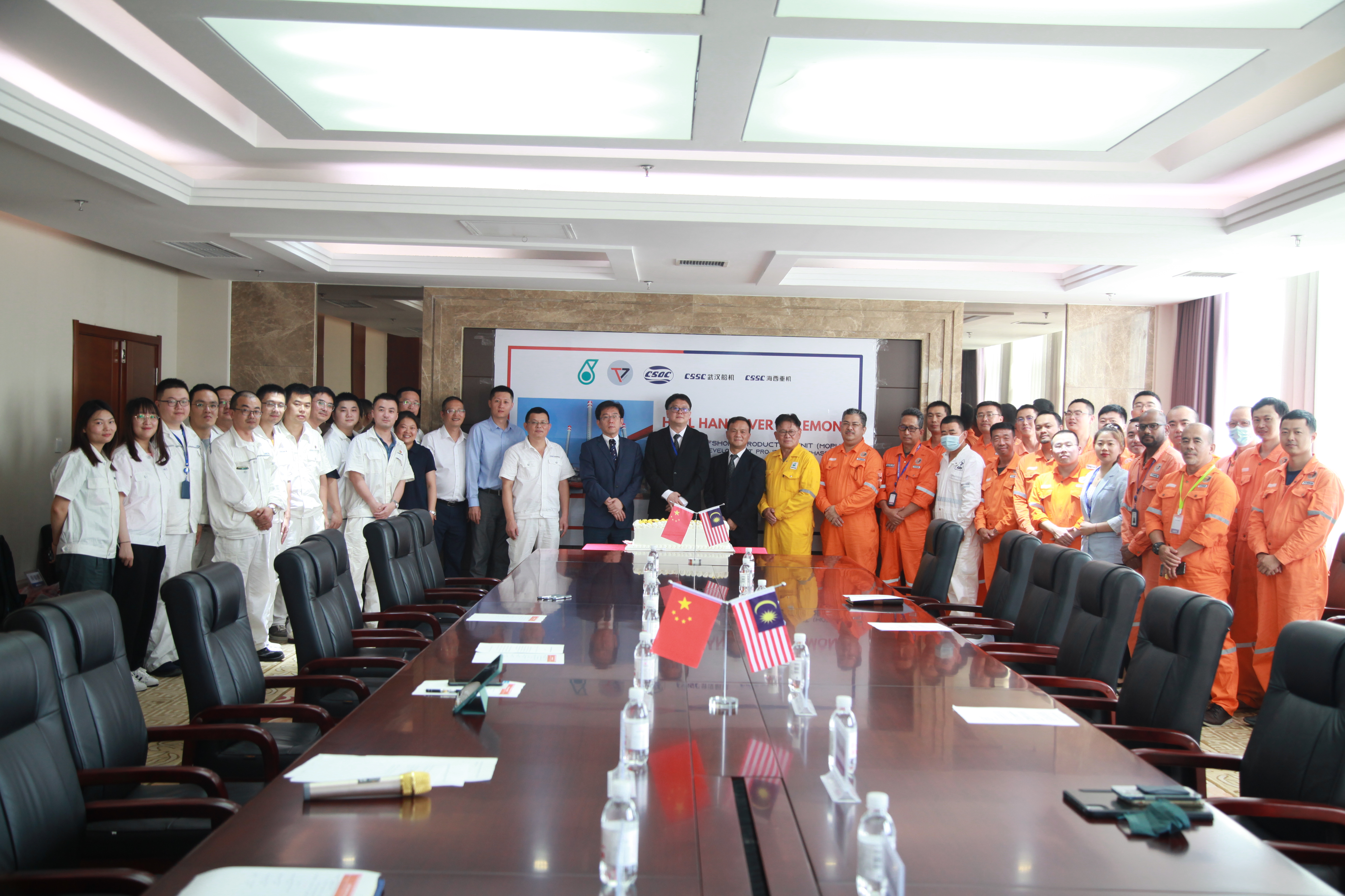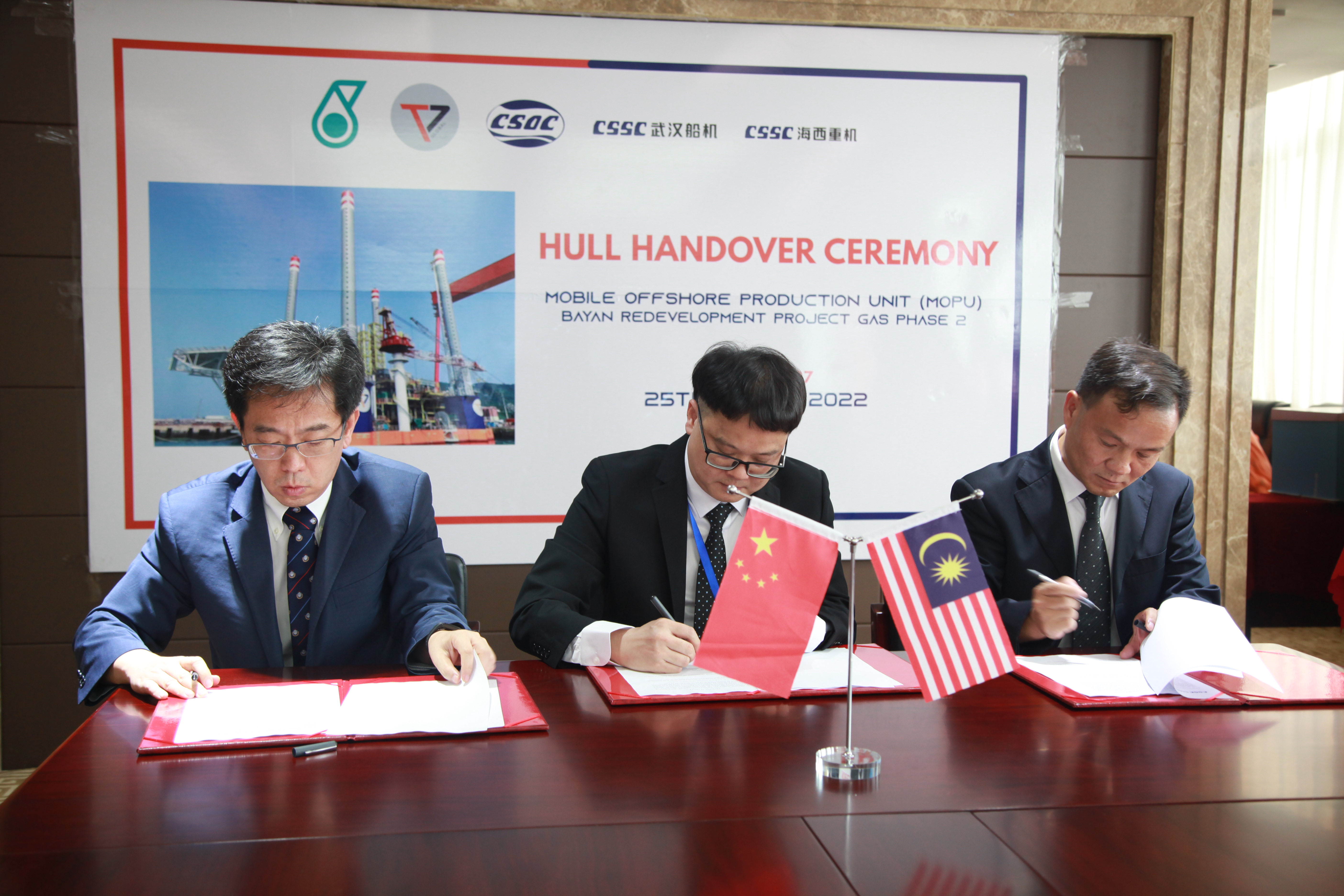 8月25日下午,由武漢船用機(jī)械有限責(zé)任公司總包,青島海西重機(jī)有限責(zé)任公司建造的馬來西亞可移動自升式生產(chǎn)(天然氣)平臺(簡稱MOPU)在中國船舶旗下武漢船機(jī)海西重機(jī)公司順利舉行交付簽約儀式,船東Tanjung Offshore、中國船貿(mào)和ABS船級社共同出席。