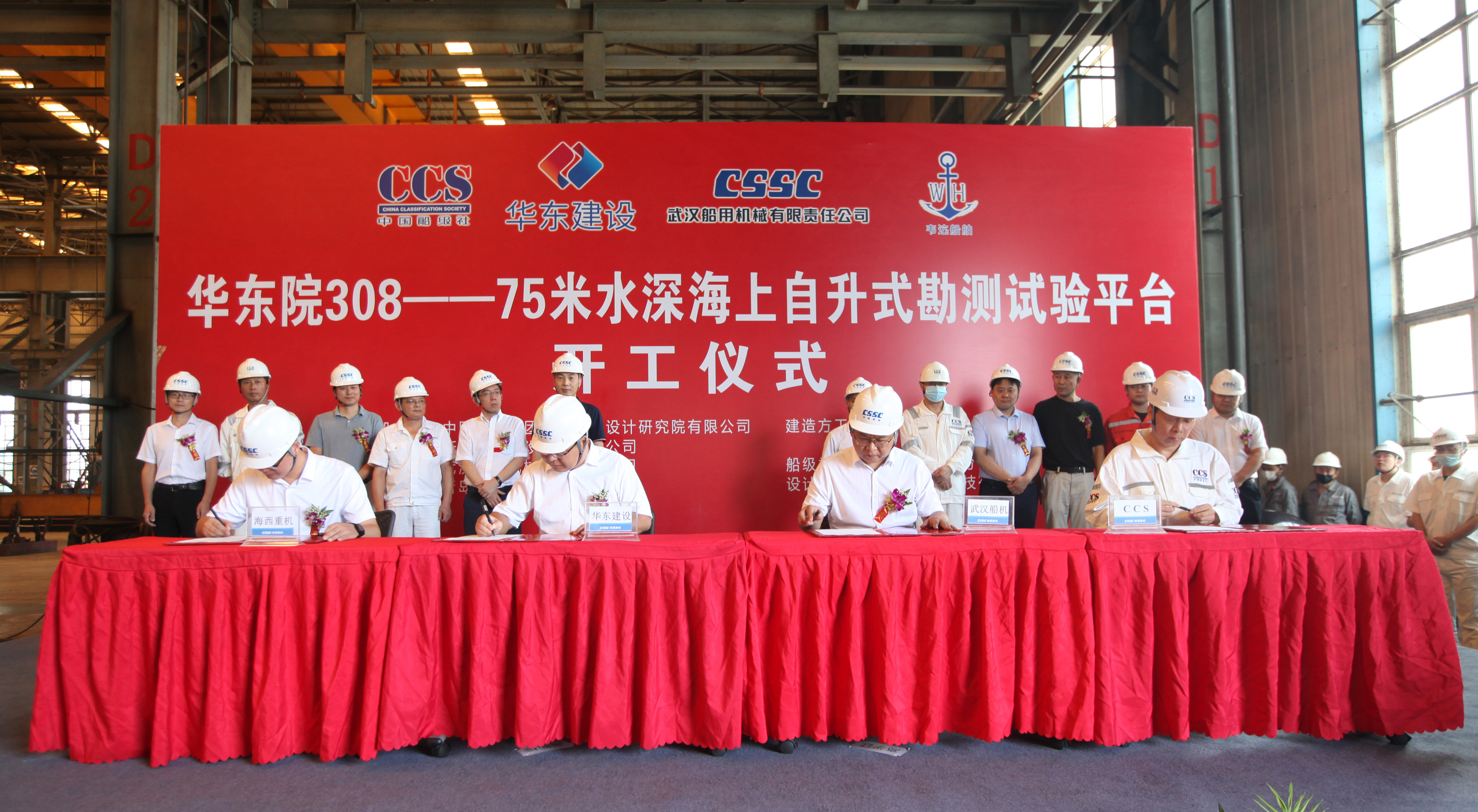 8月26日,中國(guó)船舶集團(tuán)旗下武漢船機(jī)海西重機(jī)公司承建的華東院308——75米水深海上自升式勘測(cè)試驗(yàn)平臺(tái)順利開工。浙江華東建設(shè)工程有限公司、中國(guó)船級(jí)社青島分社、杭州逸秀船舶技術(shù)服務(wù)有限公司、上海韋迒船舶科技有限公司、中國(guó)船舶工業(yè)貿(mào)易有限公司、武漢船用機(jī)械有限責(zé)任公司、青島海西重機(jī)有限責(zé)任公司代表出席儀式。