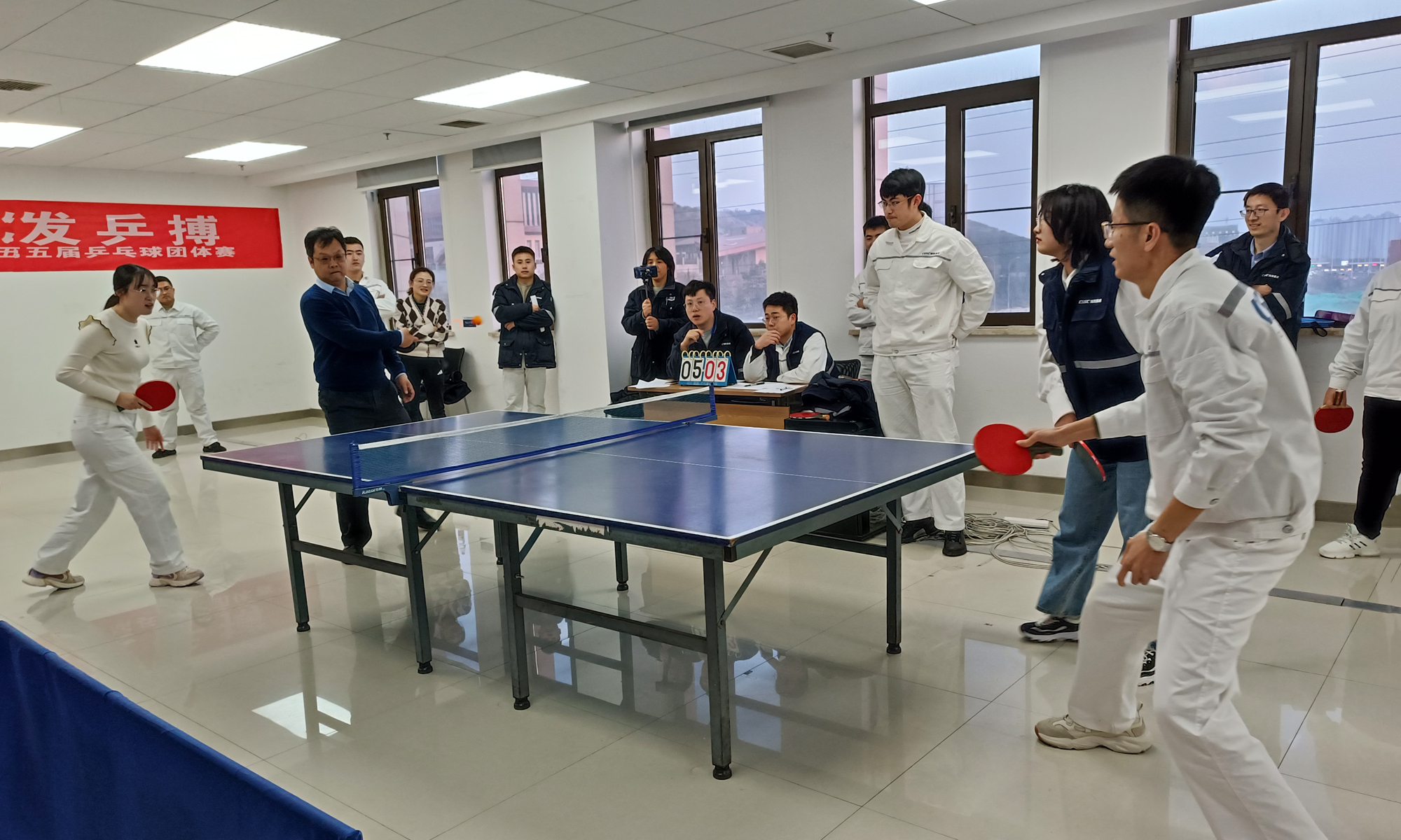 乒乓球團(tuán)體賽是海西重機(jī)的傳統(tǒng)品牌活動(dòng),有著廣泛的群眾基礎(chǔ),深受大家的喜愛(ài)。本屆團(tuán)體賽是疫情過(guò)后公司舉辦的首場(chǎng)體育競(jìng)賽活動(dòng),各參賽隊(duì)伍為達(dá)到最好的競(jìng)技狀態(tài)積極熱身、蓄勢(shì)待發(fā)。賽場(chǎng)上,選手們激揚(yáng)塵封一冬的熱情,激情揮拍、盡展風(fēng)彩;扣殺、吊球,招招出奇;斗智、斗勇,每分必爭(zhēng);強(qiáng)隊(duì)不輕敵,弱隊(duì)也不放棄。戰(zhàn)況瞬息變化,往往是山重水復(fù)疑無(wú)路,柳暗花明又一村。賽場(chǎng)氣氛熱烈歡快,精彩的比賽也博得場(chǎng)邊觀眾的陣陣喝彩,紛紛為自己支持的代表隊(duì)吶喊助威。