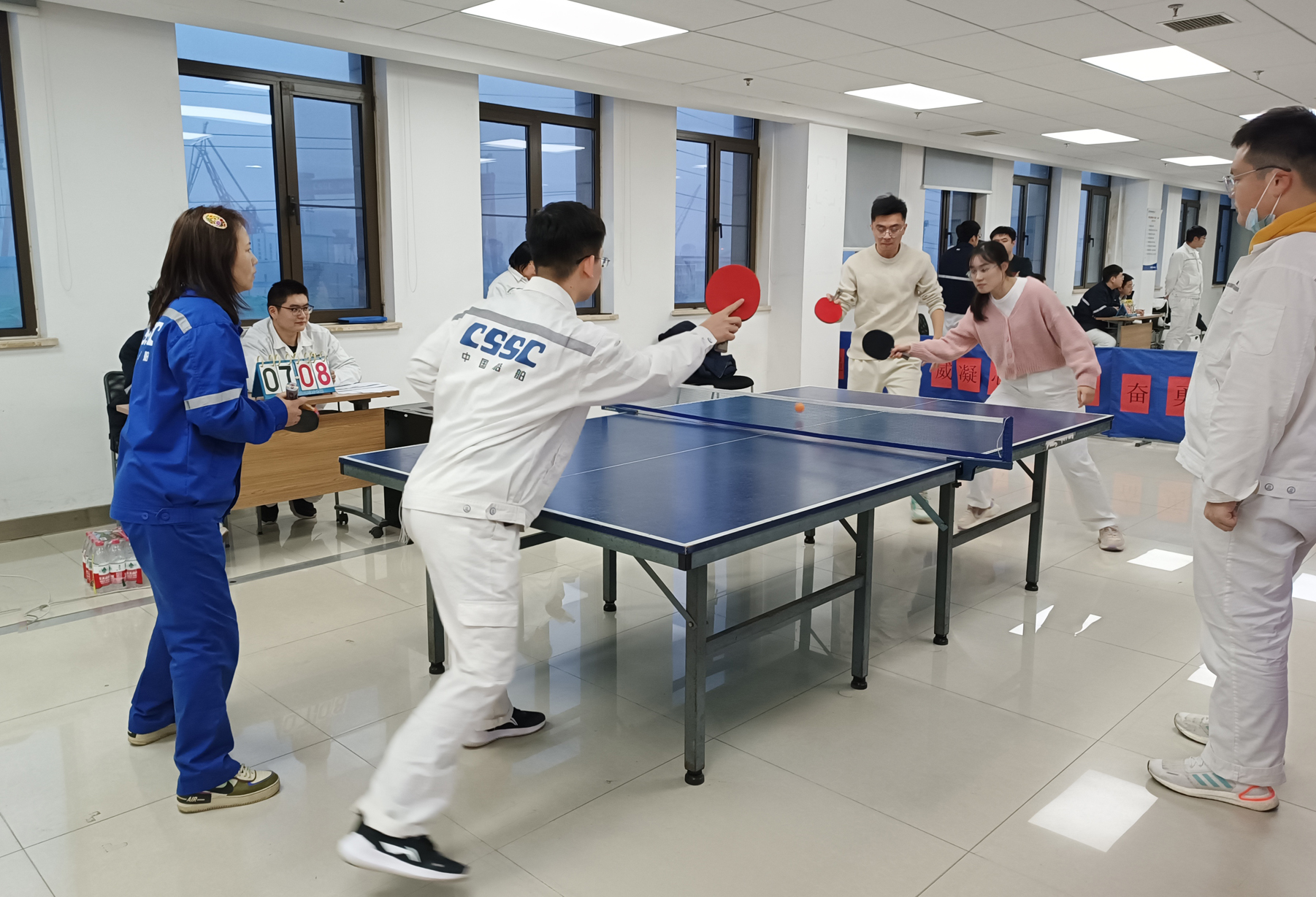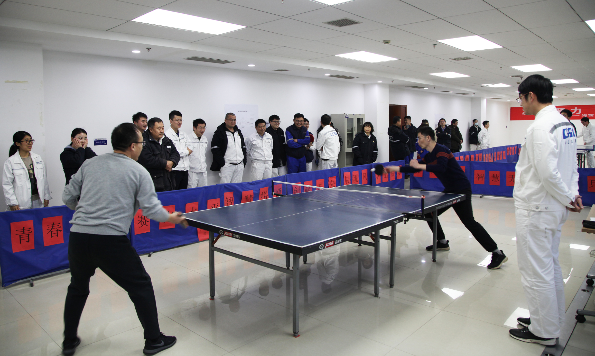 陽(yáng)春三月,疫去春來(lái),萬(wàn)物復(fù)蘇,備受期待的中國(guó)船舶集團(tuán)旗下武漢船機(jī)海西重機(jī)公司第五屆乒乓球團(tuán)體賽于2月28日揭開(kāi)序幕。比賽獲得了大家的積極響應(yīng),來(lái)自各黨支部及部門的8支代表隊(duì),50余名職工參加了此次比賽,歷經(jīng)3天激烈角逐,于3月2日?qǐng)A滿落幕。最終,項(xiàng)目管理黨支部隊(duì)勇奪桂冠,生產(chǎn)保障部隊(duì)、港機(jī)所隊(duì)分別獲得亞軍、季軍。公司黨委副書記、紀(jì)委書記、工會(huì)主席朱聲凱到比賽現(xiàn)場(chǎng)為選手們鼓勁加油,并為獲獎(jiǎng)人員頒獎(jiǎng)。