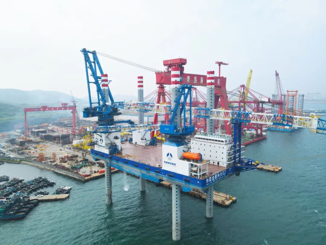 華夏金租神大02號1200噸風(fēng)電安裝平臺于2022年8月21日開工建造,2023年6月30日到達(dá)青島,2023年8月21日完成試航。到達(dá)青島海西后,項(xiàng)目組成員在01號平臺成功交付的基礎(chǔ)上,采取扎實(shí)有效的措施,狠抓生產(chǎn)組織與過程控制,僅用了不到3個月的時間就完成主輔吊機(jī)安裝、樁腿接樁、系泊試驗(yàn)、試航等主要工作,提前合同交貨期交船,向用戶交上了一份滿意的答卷。