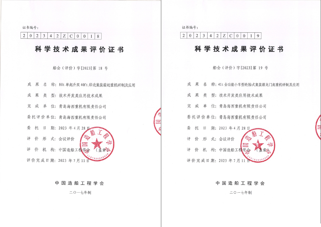 近日,中國船舶集團(tuán)旗下武漢船機(jī)海西重機(jī)公司“80t單起升雙40ft岸邊集裝箱起重機(jī)研制及應(yīng)用”、“41t全功能小車型輪胎式集裝箱龍門起重機(jī)研制及應(yīng)用”兩項(xiàng)科技成果通過中國造船工程學(xué)會科學(xué)技術(shù)成果評價,與會專家一致認(rèn)為,整體技術(shù)水平達(dá)到國際先進(jìn)水平。
