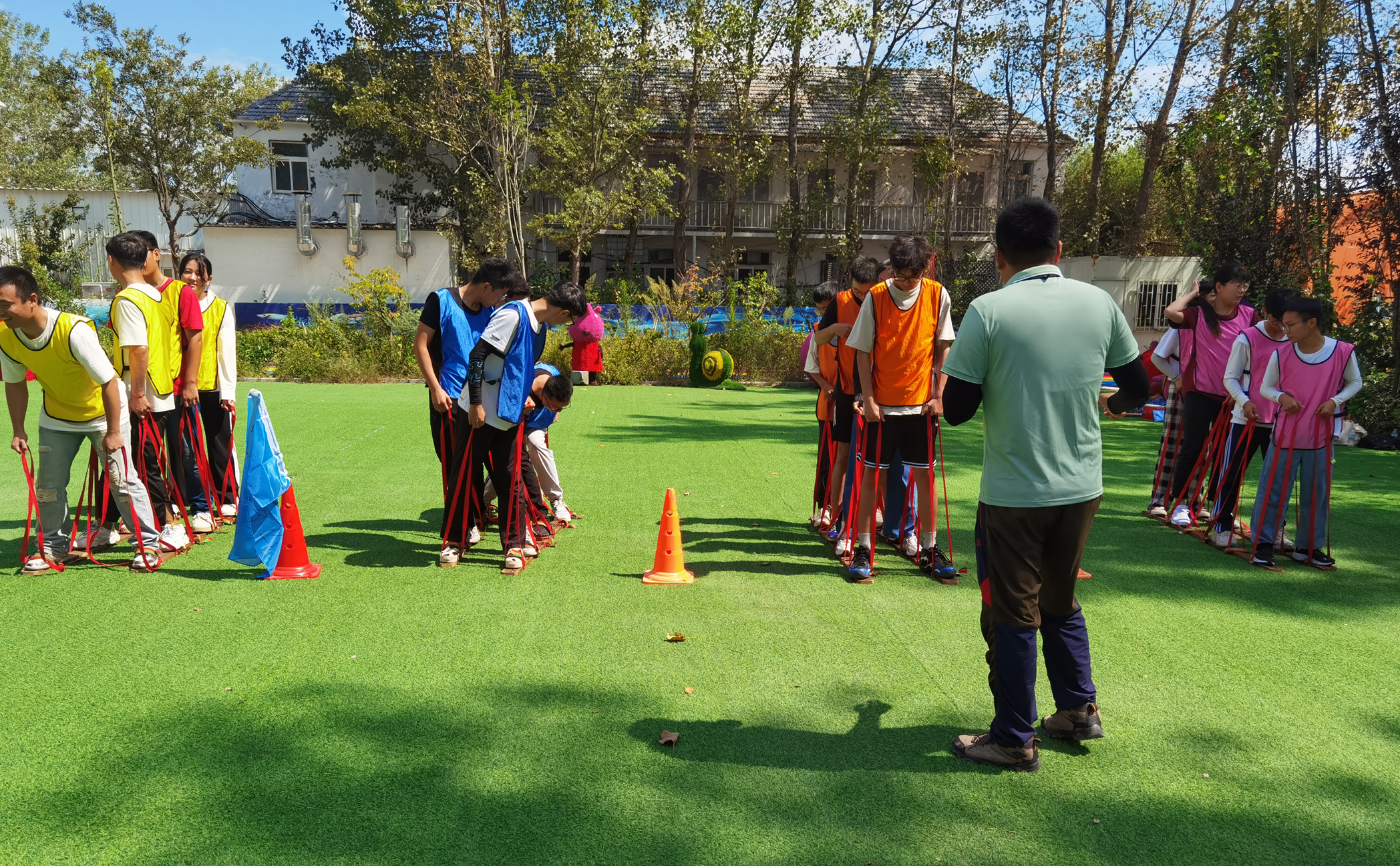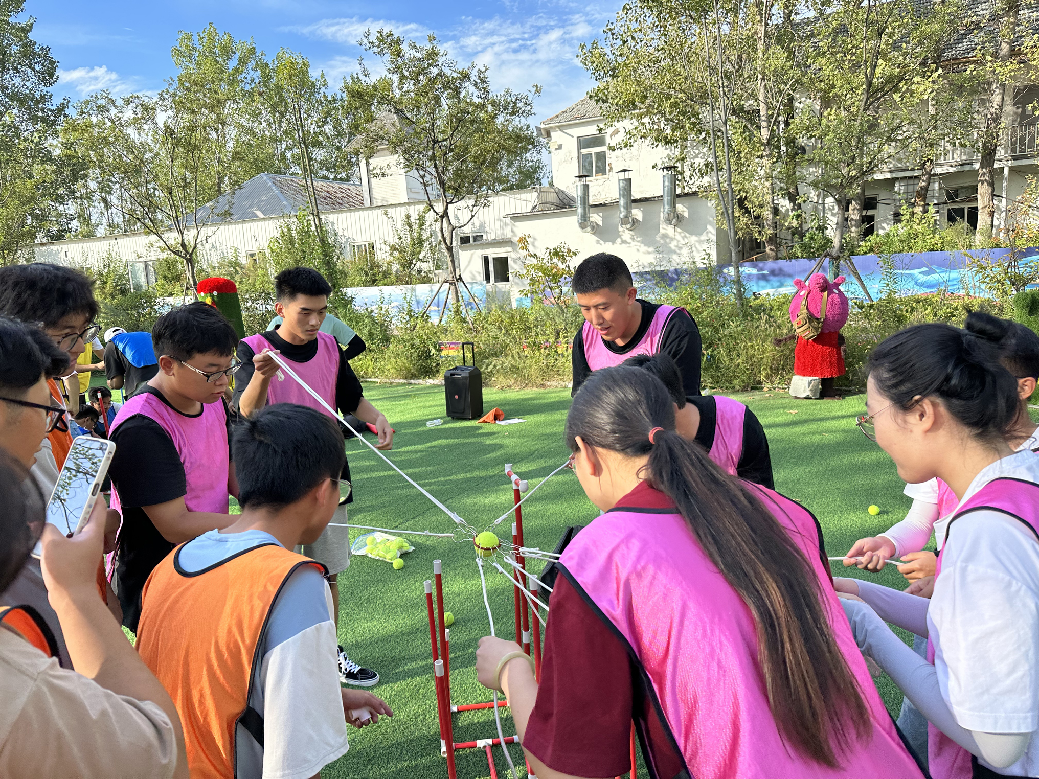 秋風(fēng)送爽,秋意宜人。早上九點(diǎn)鐘,大家到達(dá)了嶗山王哥莊拓展基地,活動(dòng)拉開帷幕。新員工們分成了“美團(tuán)隊(duì)”、“餓了么隊(duì)”、“汪汪隊(duì)”、“芭比猛男隊(duì)”四支隊(duì)伍。選隊(duì)長(zhǎng)、起隊(duì)名、喊隊(duì)訓(xùn),大家相互了解加深,團(tuán)隊(duì)氛圍逐漸熱烈,為接下來的培訓(xùn)做好準(zhǔn)備。各種室外室內(nèi)拓展項(xiàng)目——“挑戰(zhàn)團(tuán)隊(duì)極限”、“有軌電車”、“急速60秒”、“旱地冰壺挑戰(zhàn)賽”、“團(tuán)隊(duì)金字塔”,用豐富多彩的趣味游戲寓教于樂,幫助學(xué)員體會(huì)團(tuán)隊(duì)合作的重要性。
