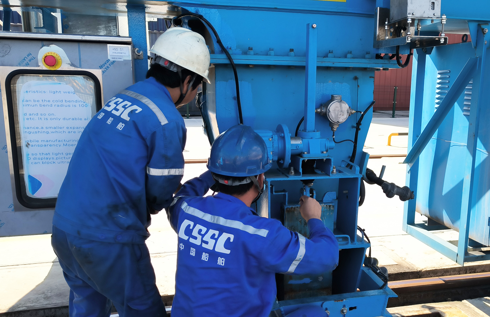 近日,隨著最后一臺軌道吊試運行結束,標志著中國船舶集團旗下武漢船機海西重機公司承接的舟山甬舟集裝箱碼頭有限公司16臺軌道吊自動化改造項目順利完工,打通了該碼頭堆場現(xiàn)有軌道吊全部自動化最后一公里。
