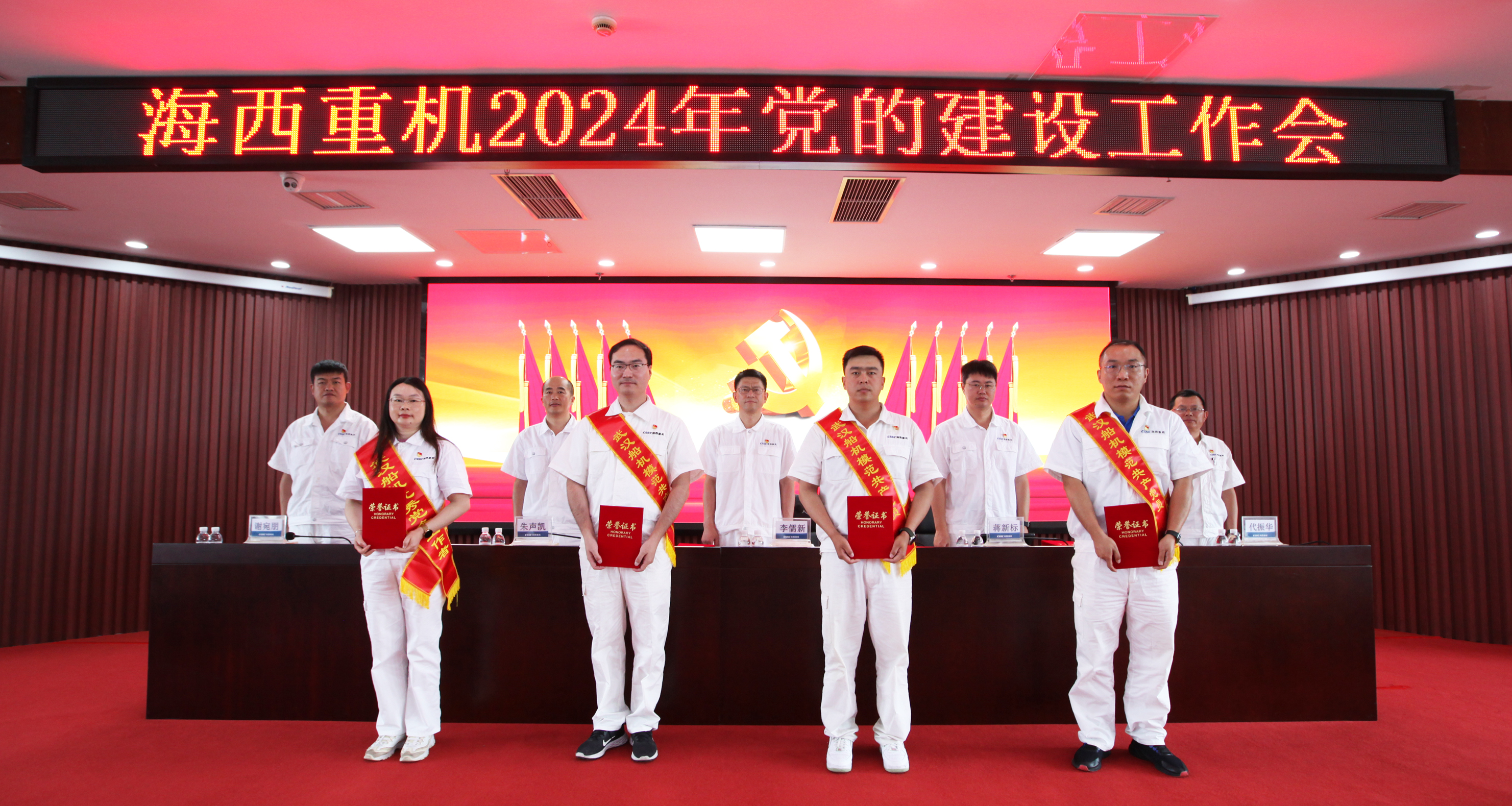 7月13日,中國船舶集團旗下武漢船機海西重機公司召開慶祝中國共產(chǎn)黨成立103周年暨2024年黨的建設(shè)工作會,全面總結(jié)一年來公司黨建的建設(shè)工作,分析形勢與任務(wù),部署下一階段公司黨的建設(shè)工作,表彰“兩優(yōu)一先”。海西重機中層及以上管理人員、專家、資深及以上工程師、中級及以上項目經(jīng)理、區(qū)域經(jīng)理、主管以及受表彰的先進個人參加會議,上海設(shè)計院以視頻的形式參加。