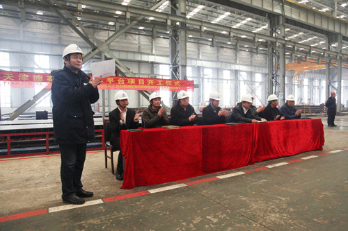 在開工點(diǎn)火儀式上,船東德賽公司和美國(guó)ABS船級(jí)社都充分肯定了公司在開工前的準(zhǔn)備工作,對(duì)公司的施工組織設(shè)計(jì)、項(xiàng)目人員配備、焊接工藝評(píng)定等等工作都非常滿意。公司副總孫國(guó)慶在點(diǎn)火儀式上承諾:在船東代表的指導(dǎo)下,在美國(guó)ABS船級(jí)社的監(jiān)造下,公司一定秉承“你(德賽公司)給我機(jī)會(huì),我給你喜悅”,建造一個(gè)一流的海工平臺(tái)交付船東,讓大家都喜悅!