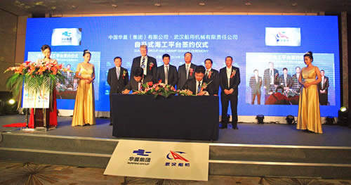 2014年7月2日,武漢船用機械有限責(zé)任公司與東方華晨集團,在青島海西灣青島海西重機舉行了10臺自升式海工平臺項目的合同簽字儀式。武漢船機董事長何紀(jì)武、東方華晨集團主席程立新先生等出席了簽字儀式。
