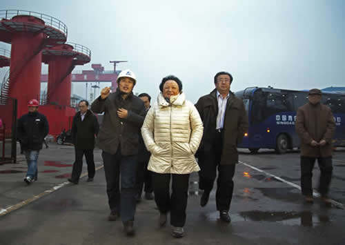 高層專家團(tuán)實地考察了海西重機(jī)即將出口的90米自升式功能性海洋平臺、整機(jī)待發(fā)往意大利的超巴拿馬大型岸橋項目等。并聽取了公司副總經(jīng)理朱聲凱關(guān)于公司以抓住發(fā)展海洋經(jīng)濟(jì)、走向深藍(lán)為機(jī)遇,“港口機(jī)械與海工產(chǎn)品并重”發(fā)展的匯報,以及青島市科協(xié)對促進(jìn)海西重機(jī)科技人才培養(yǎng),提高公司技術(shù)創(chuàng)新水平,幫助公司做大做強(qiáng)提供了重大智力支持,成為海西重機(jī)“科技興企”的又一支重要力量。并在科協(xié)的大力支持下,公司與侯保榮院士、陳蘊(yùn)博院士帶領(lǐng)團(tuán)隊,成立“院士工作站”,嫁接企業(yè) ,助力公司騰飛的匯報。